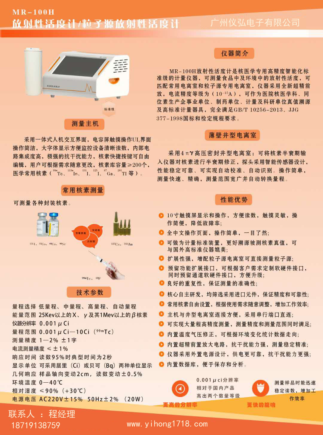 MR-100H放射性活度計(jì)是一種定量測量放射性活度的儀器,主要應(yīng)用于醫(yī)院核醫(yī)學(xué)科、同位素生產(chǎn)單位、制藥單位、科研單位等。