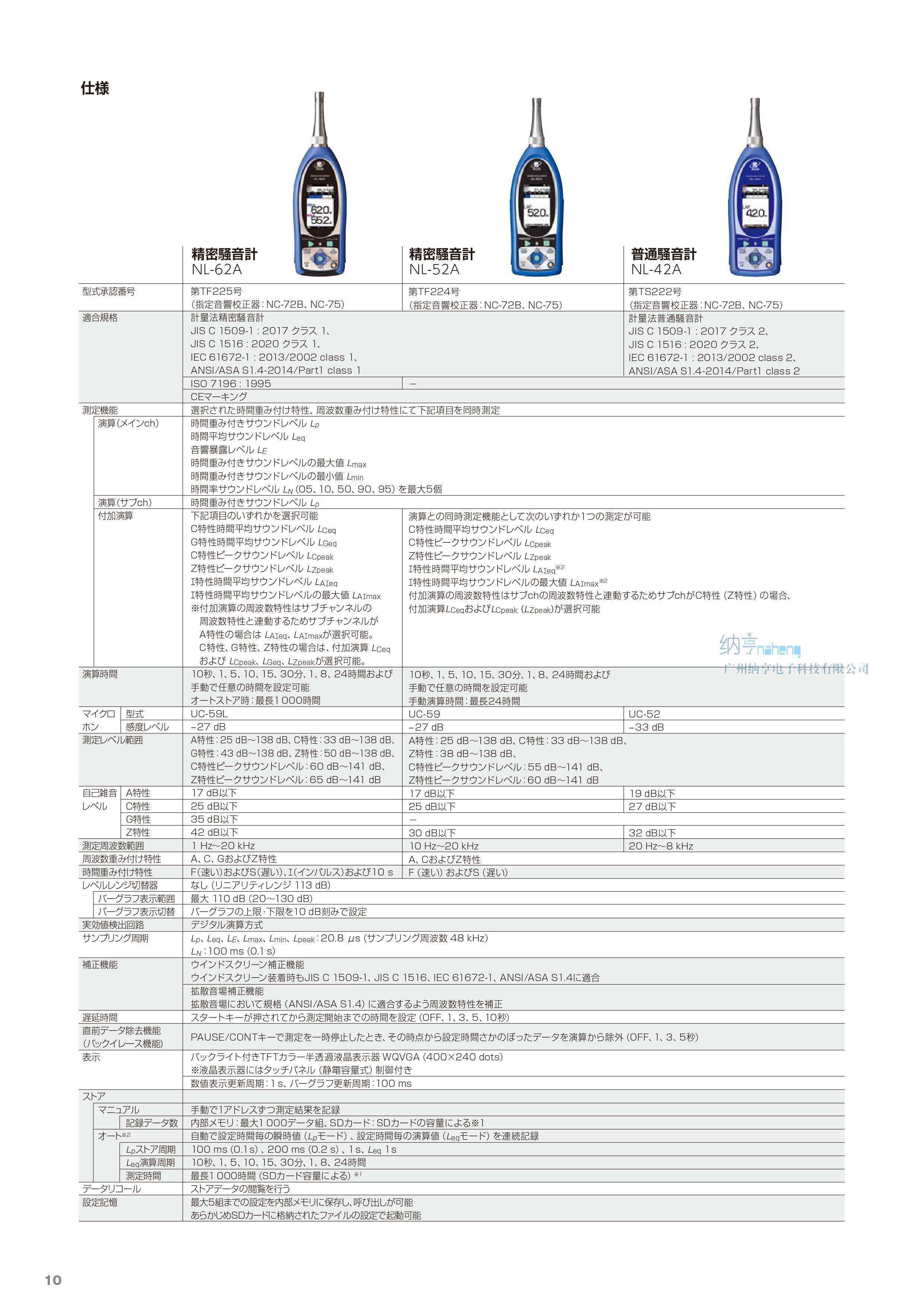 理音RION NL-52A精密聲級計技術參數(shù):